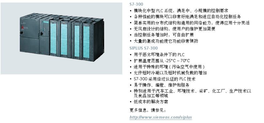 S7-300是德國西門子公司生產的可編程序控制器(PLC)系列產品之一。其模塊化結構、易于實現分布式的配置以及性價比高、電磁兼容性強、抗震動沖擊性能好,可適用于以下行業:
